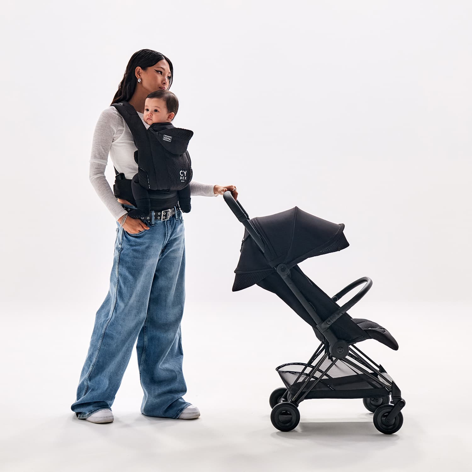 Really, there’s no better illustration of what CYBEX is all about than their Urban Mobility collection, which, as Pos puts it, is “much more than just a fashion collection” for his brand. Inspired by his jaunts to Tokyo, where he took cues from quintessentially Japanese brands like Comme des Garçons and Yohji Yamamoto, as well as “the cool busy lifestyle led by the Japanese families,” these staples of babywear are transformed into something that feels entirely different. Their unique designs come rendered in “the coolest shades of monochrome black and white” — the kind of products you can envisage not only on some cool dad wandering Shibuya Crossing, but round east London’s Victoria Park, in Paris, or any city that’s got a certain stylish hustle and bustle about it.