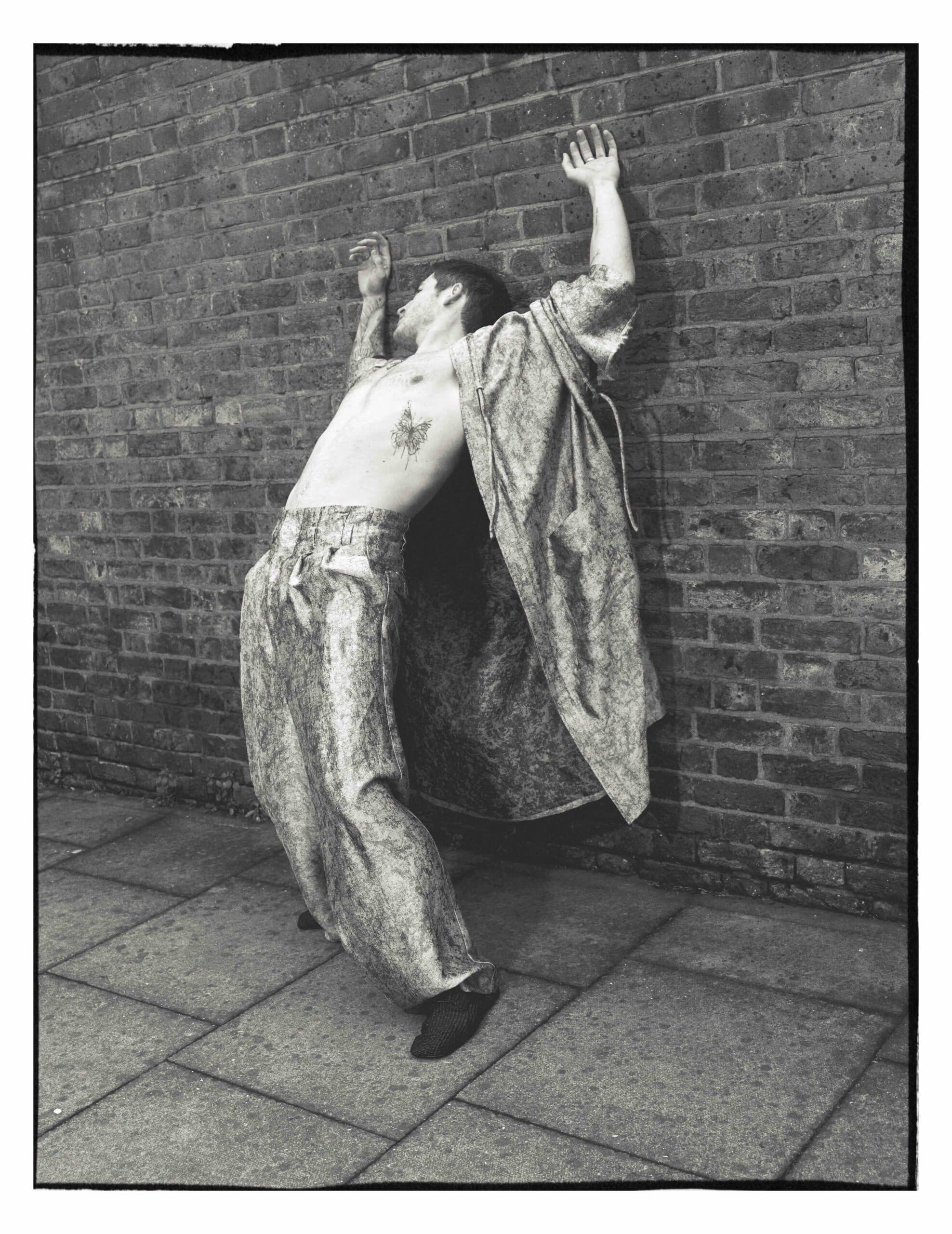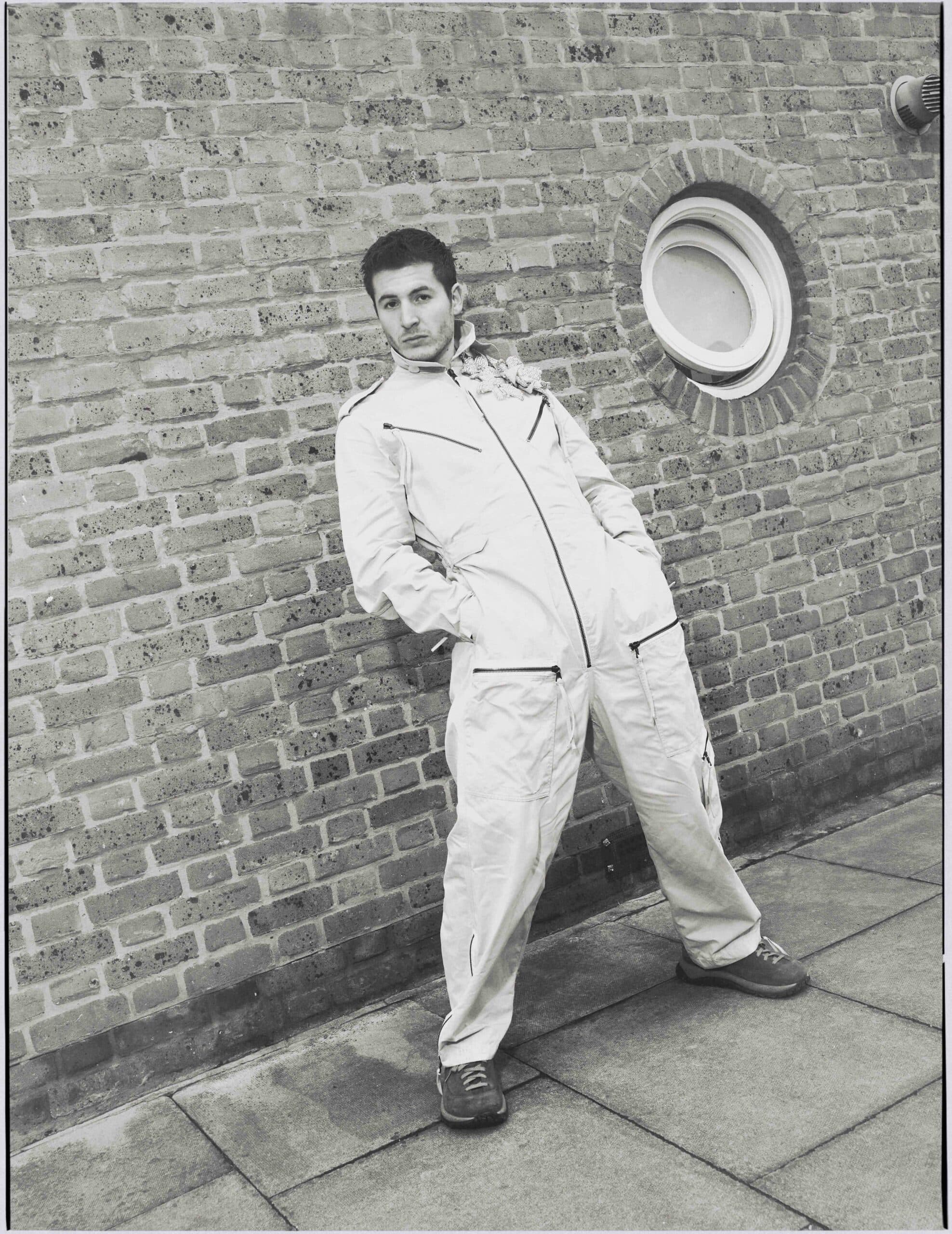 Kieron wears jumpsuit by DAVID KOMA and shoes by BIRKENSTOCK 1774.