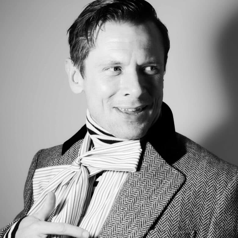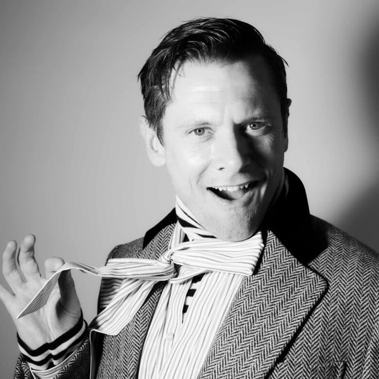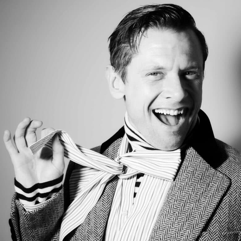 The next time that O’Connell flexes this philosophy will be when he returns to screens as Sir Jimmy Crystal in 28 Years Later: The Bone Temple. His character is the leader of a Jimmy-Saville-inspired cult and O’Connell has previously described him as a ‘gas cunt’. After making a brief appearance in 28 Years Later — dressed in a purple velour tracksuit, with three thick, gold chains and Saville’s signature shoulder-length bleach blonde hair — O’Connell is set to take centre stage in its sequel. “Obviously, the first character that jumps off the page is Sir Jimmy,” he posits. For many actors, playing a man who is based on the country’s most notorious paedophile would be a hard sell — but not for O’Connell. “I just really wanted to play him. I love the twistedness, the gaiety, that he’s taken from all of the evil.” Playing a villain for villain’s sake wasn’t something that interested O’Connell, though — Sir Jimmy Crystal appealed to the actor because of the multifacetedness of his character. “We get to understand Jimmy’s backstory, we get to know why he’s so dark,” O’Connell explains. “He’s living in a post-apocalyptic world — so, who is anyone to judge? In his world, black is white. Ignorance is strength ,” O’Connell says, before adding, “Please do keep in my George Orwell quote, won’t you? I feel quite smart.”