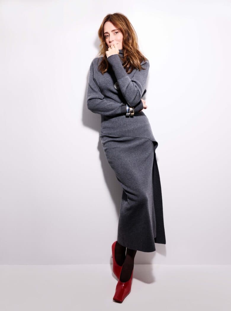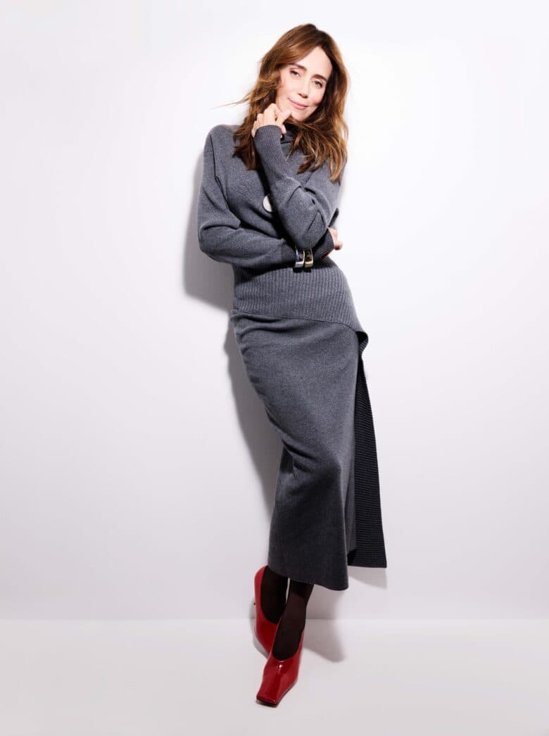 While Hawes relishes her evolving career on both sides of the camera, she isn’t blind to the ominous feeling of the years passing by. The actor tells me how she recently attended the funeral of Sylvia Young, the founder of the theatre school Hawes attended from age nine. On the day, she found herself looking around the room filled with her industry peers and reflecting on her career. “I started really young, I really don’t know anything else,” she concludes. “[Acting] has been part of the fabric of my life [throughout] my formative years. Now, I’m looking at all the girls from my class and it’s funny — we’re all turning fifty next year.” She laughs. “How can you go from nine to fifty? It did make me think, God, I’ve really been at this for a long time.”