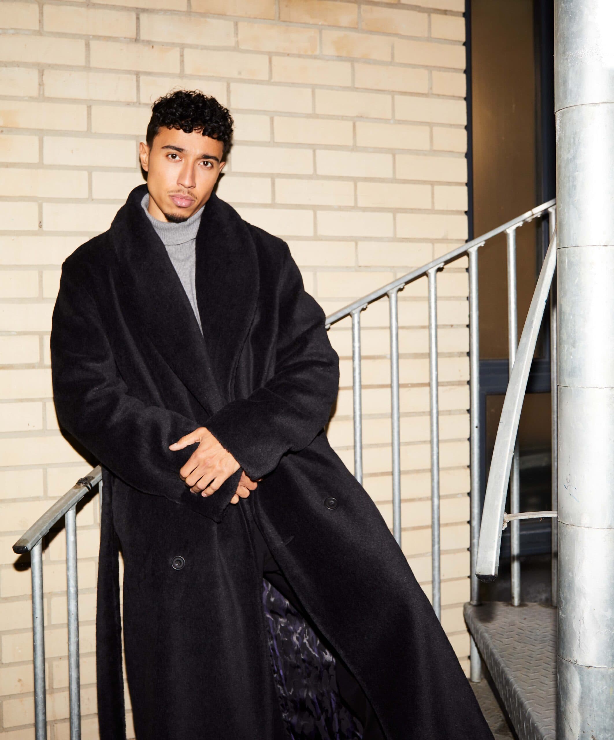 That fleeting moment on stage, a split second of capturing and holding the audience’s attention, was enough to change the course of Elazouar’s future forever. Rather than attend university as he’d planned, he pivoted towards a career in the arts. It was a decision that surely required guts, but the actor seems almost impervious to nerves. “That was a decision I went into with one hundred percent conviction,” he tells me. “There were moments when I couldn’t even afford the bus, but it taught me that risk is very important. Always risk it when you can.”