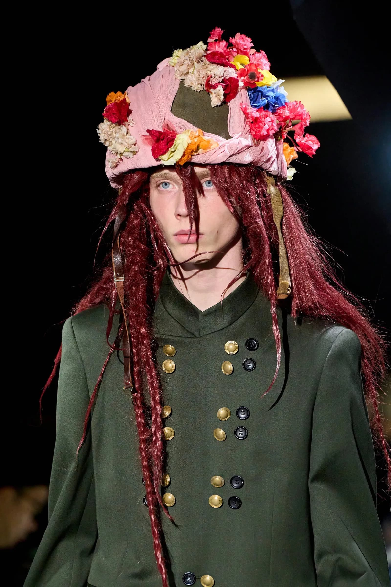 The Japanese brand’s founder, Rei Kawakubo, decided to actually use her show for good and led with the message of “To Hell With War”. The clothing followed suit with feminised-versions of military wear – think plaited wigs, flowers and satin – with a suitably-political punk flavour that also gave a nod to Comme des Garçons roots. The models were also notably on the younger side to highlight the plight of the youth being tragically ravaged by war across the globe. With the ongoing crises in Gaza, Ukraine and Sudan (to name just those), it was an important reminder of reality amongst all the glamour of PFW.