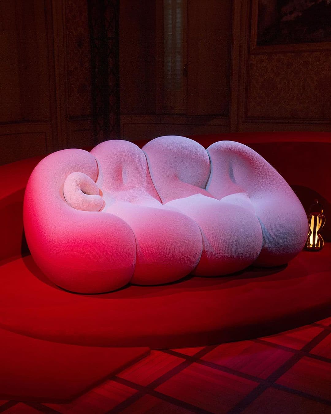 For the 2024 fair, Gucci’s creative director Sabato De Sarno worked with Michela Pelizzari, the founder of P:S (a consultancy agency for the creative world) to recreate five signature pieces of Italian furniture — all splashed in their new signature ‘Rosso Ancora’ colour. The collection was exhibited at Gucci’s flagship store in Milan alongside an eye-catching lime green installation by Spanish architect Guillermo Santomà. Inspired by the original design by Mario Bellini for Tacchini in 1972, the ‘Le Mura’ sofa is our favourite piece from this year’s limited-edition launch.
