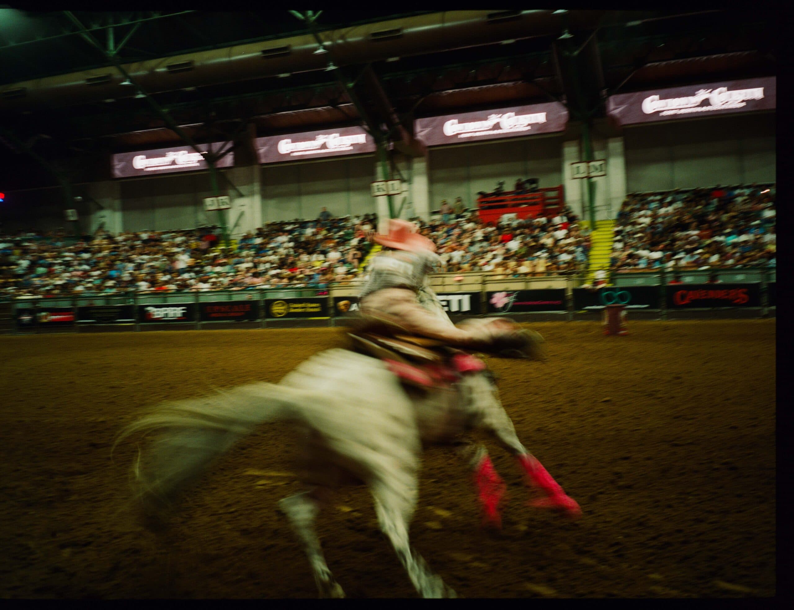 KV: Some images remain raw, unedited stills, while others begin to lean into your style, like the bull rider in ‘The Rodeo’. How did you decide when to incorporate your signature style?