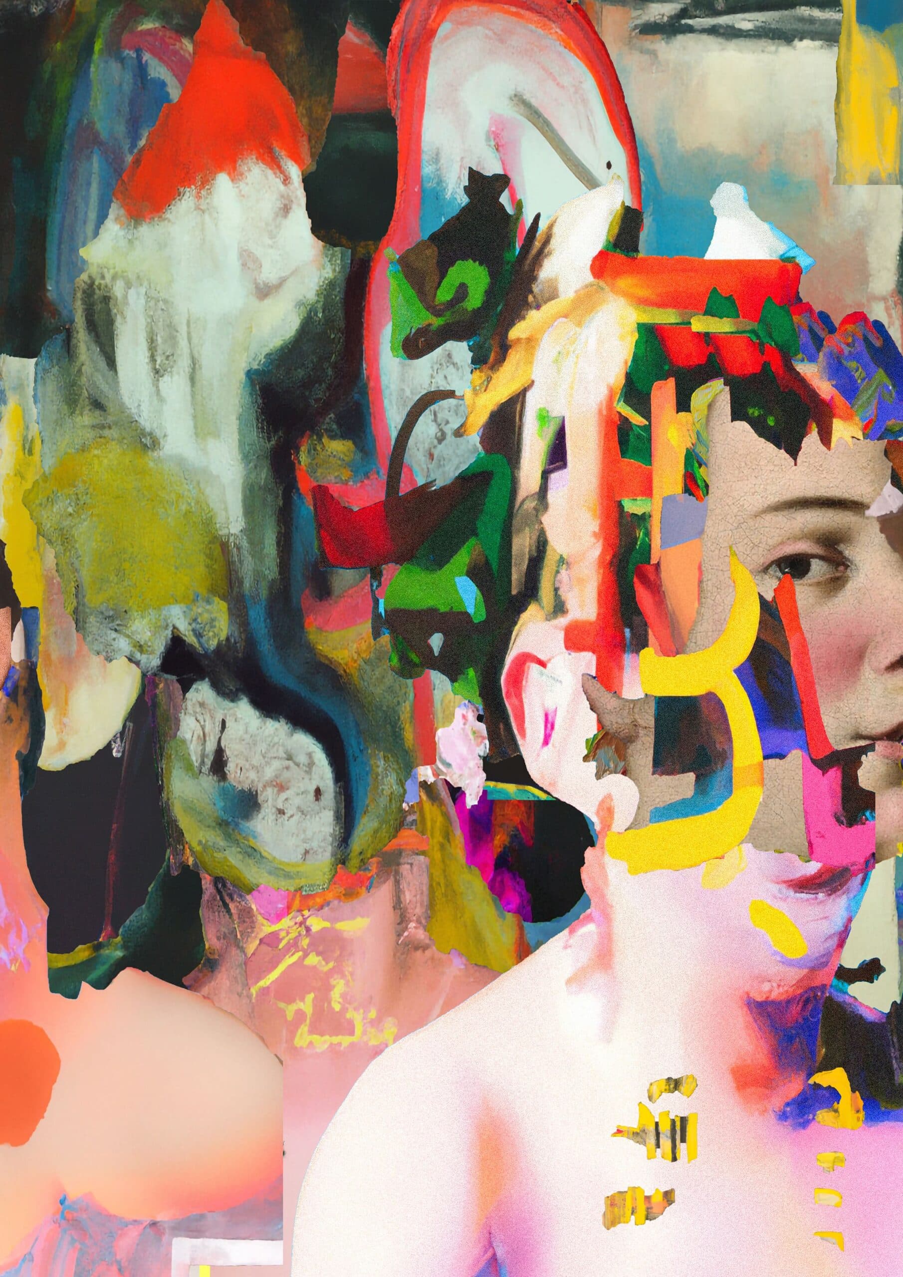 I began with acrylic on canvas, but over time I started using digital technology to collage paint, paper and elements of previous works. Digital collage offers a calmer process for me. It allows me to work with patience and peace of mind, whereas painting can feel more intense and unpredictable. I often use painting now as a space to experiment, creating material that I can later rework digitally. I’m still layering, cutting, and composing, just in a different medium. In the past I experimented with video, sculpture, sound and anaglyphic painting. This all feeds into the digital work. The possibilities with digital collage feel endless, but the conviction and thought behind each piece remains the same as when I paint on canvas. For my next collection of works, I’m planning to return to painting and combine both the physical and digital aspects of my work.