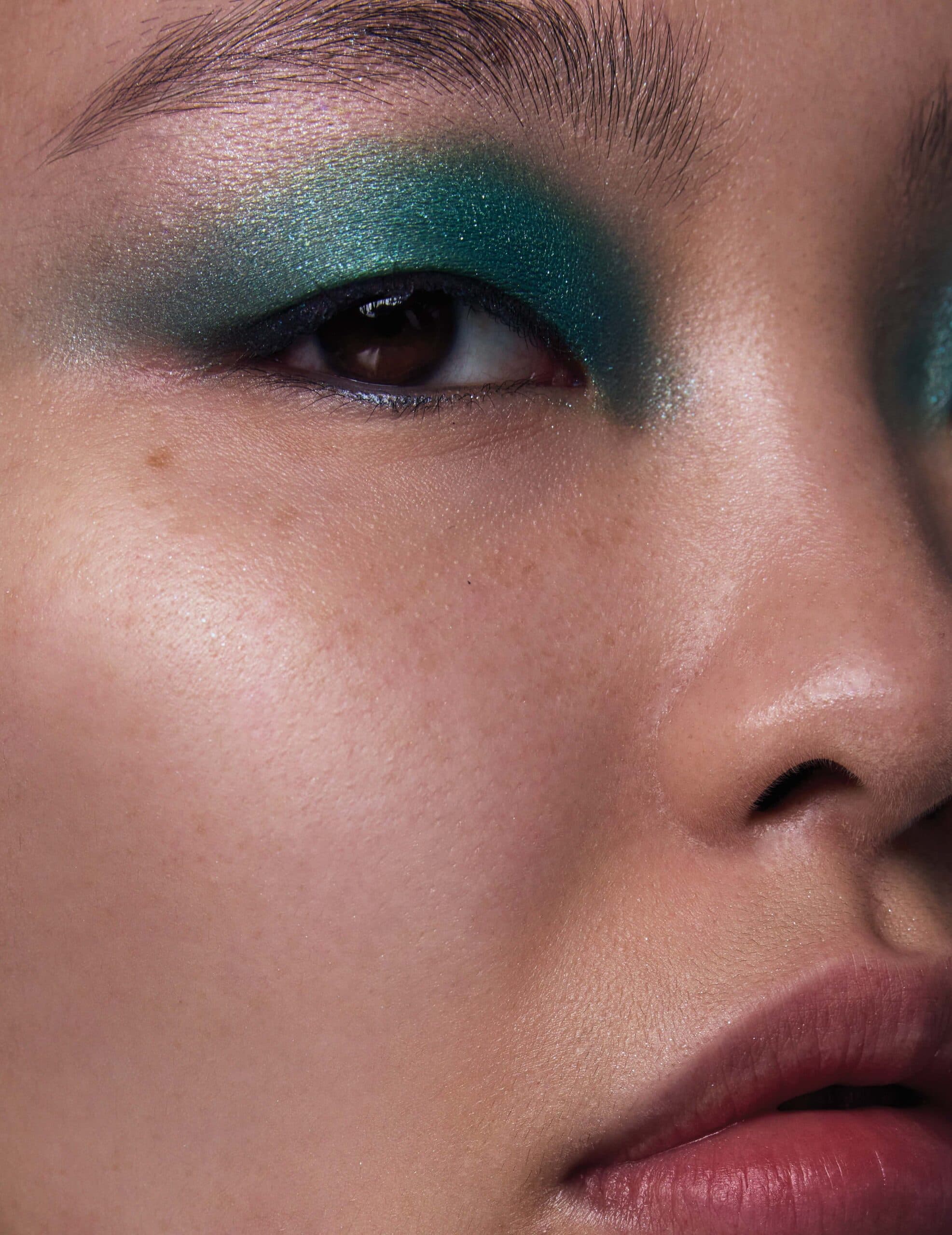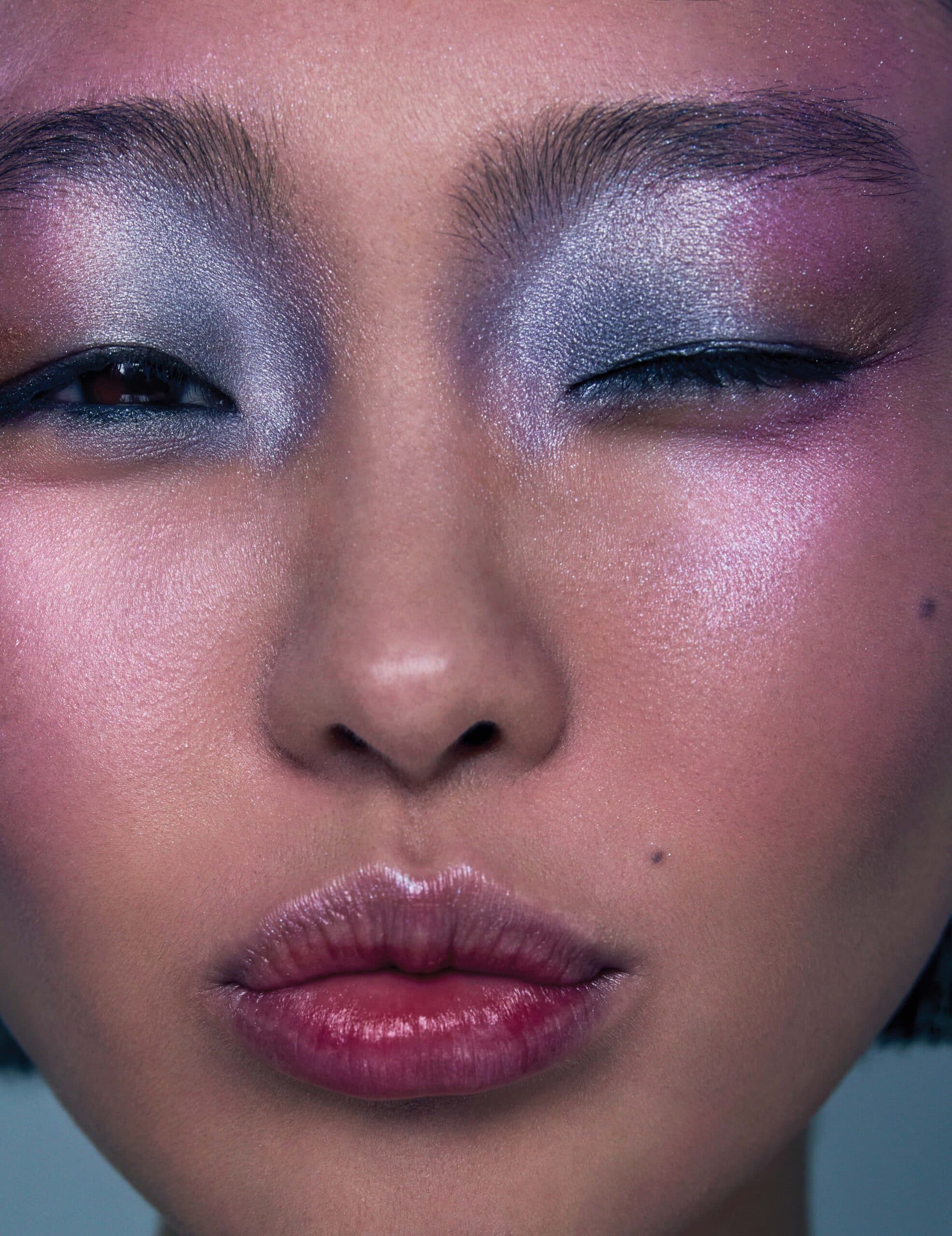 Nomin wears CHANEL Le Lift Crème, CHANEL Les Beiges foundation in BD11 and CHANEL Poudre Universelle Libre in 10 Light on skin, CHANEL Le Gel Sourcils in 350 Transparent on brows, CHANEL Noir Allure mascara in 77 Anthracite on lashes, CHANEL Les 9 Ombres eyeshadow palette in 849 The Space Traveler on eyes, Les Signes de CHANEL Illuminating Powder blush in 998 Pêche Lumière on cheeks and CHANEL Rouge Allure Velvet lipstick in 548 Abstrait on lips.