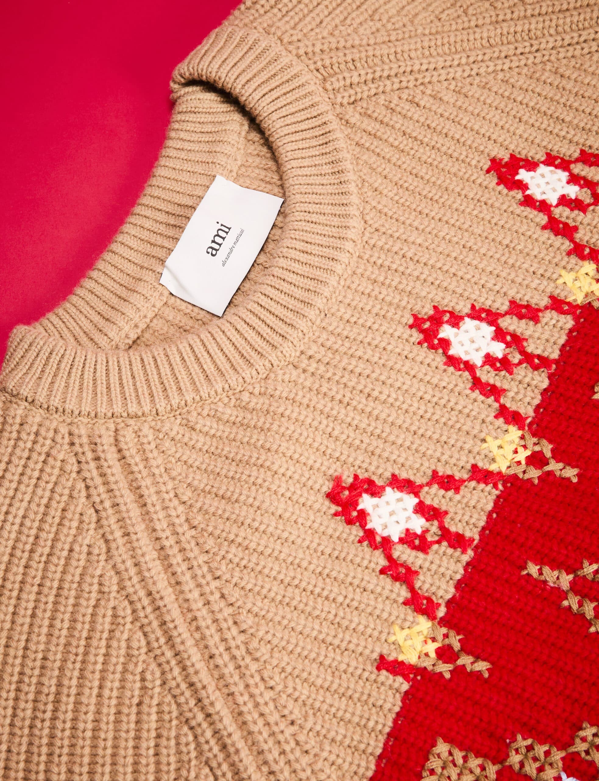 AMI PARIS Brown Wool Round Collar With Cross Stitch Sweater | £540 at AMI PARIS