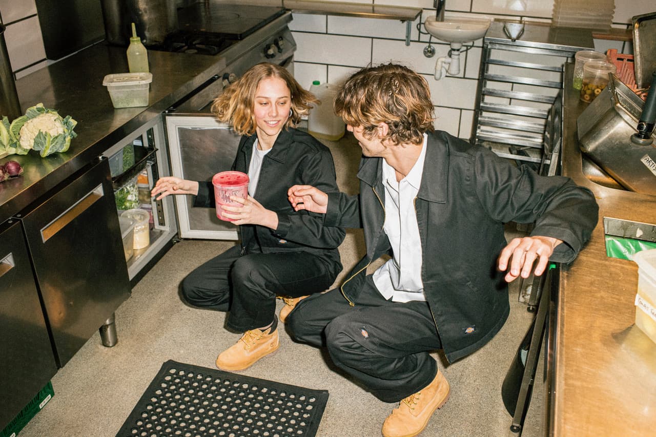 Next up, we have Dickies, who recently launched their SS24 campaign ‘Made In Dickies: Built tough, cooked fresh’. As you could probably guess from the title, the campaign combines food with fashion, as the American workwear brand profiles Copenhagen-based restaurant Baka d’ Busk. The restaurant transcends the food and dining experience, however, acting as a creative outlet with a strong penchant for reinvention and producing new identities. As expected from the workwear icons, Dickies’ range focuses on denim and twill with intricate embroidered details making for relaxed, durable and hardwearing pieces. One particular standout is the Herndon Jacket – Made of medium-weight denim, it’s a warm, comfortable jacket that boasts a bold floral design embroidered on its reverse. Meanwhile, the classics also make an appearance in the form of the Eisenhower Jacket and 874 work pants. Check out our favourites from the collection below, and to shop the range, click here.