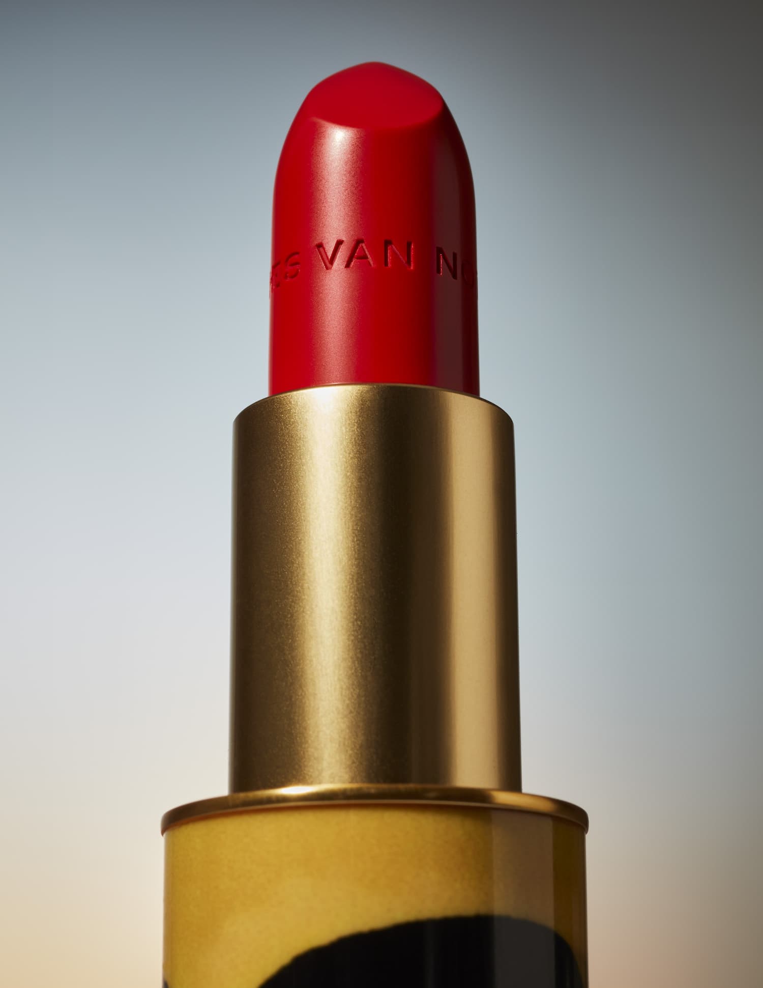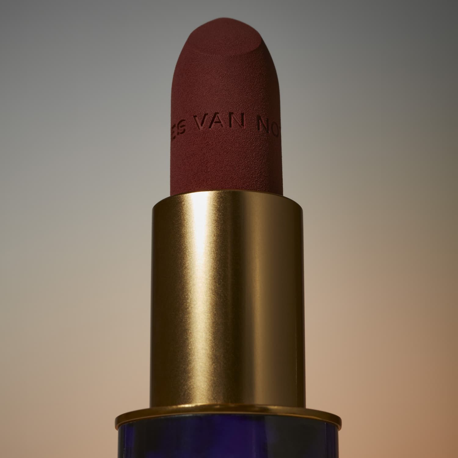 DRIES VAN NOTEN Lipstick Refill in 17 Cool Matte and DRIES VAN NOTEN Refillable Lipstick Case in Amber Jungle.