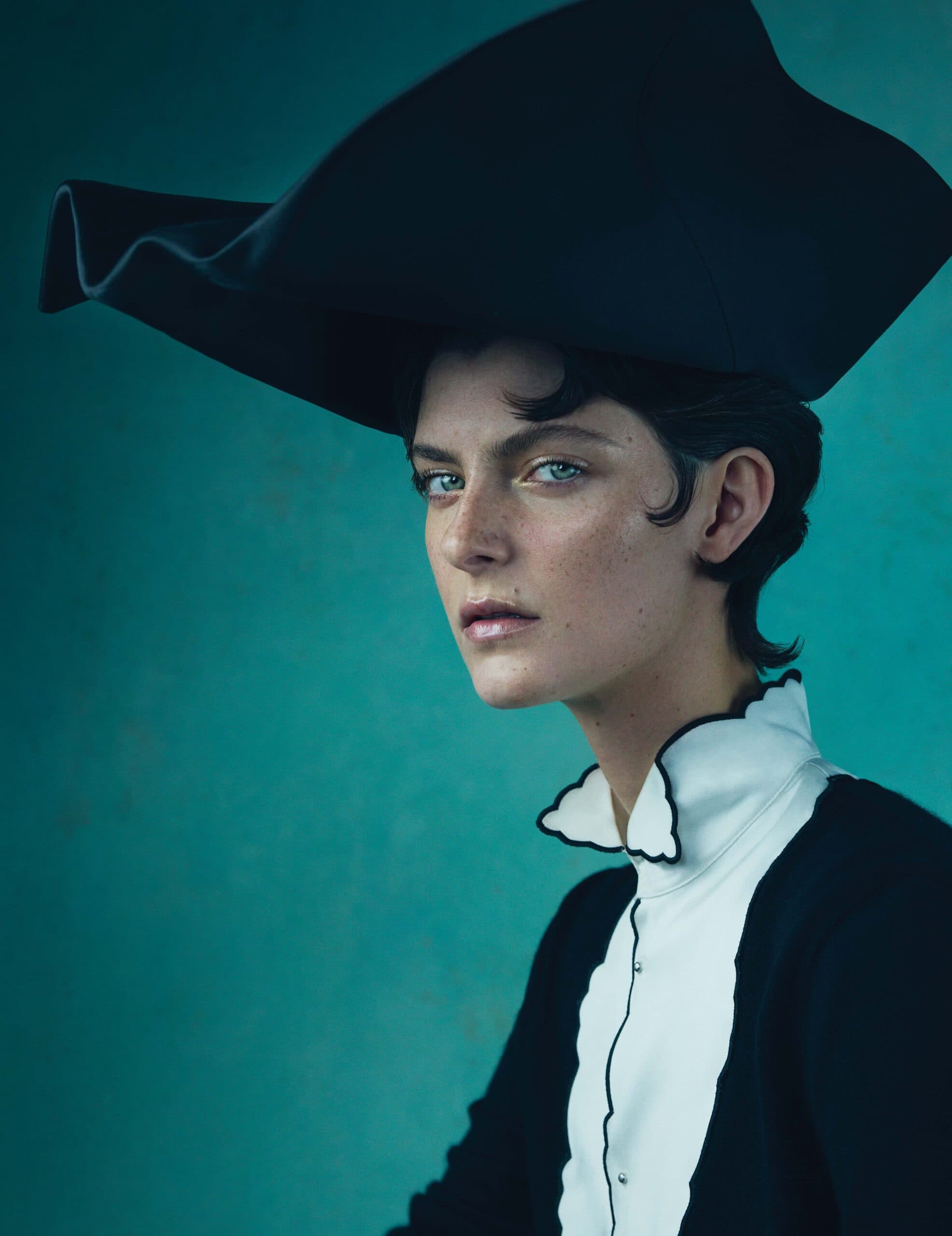 Chloe wears top and hat by DIOR.