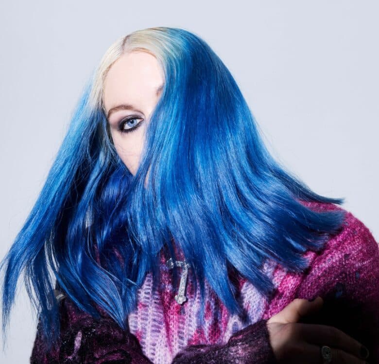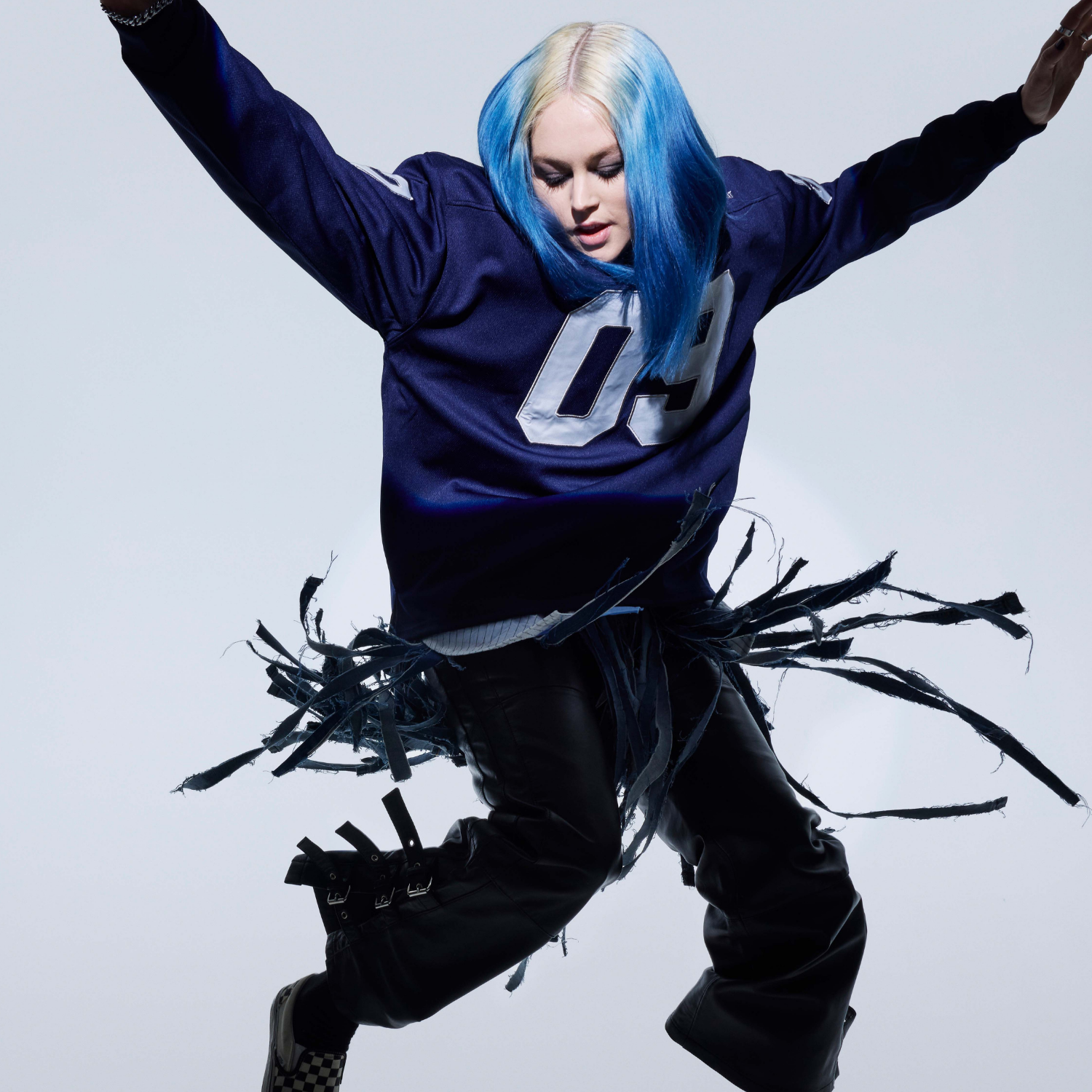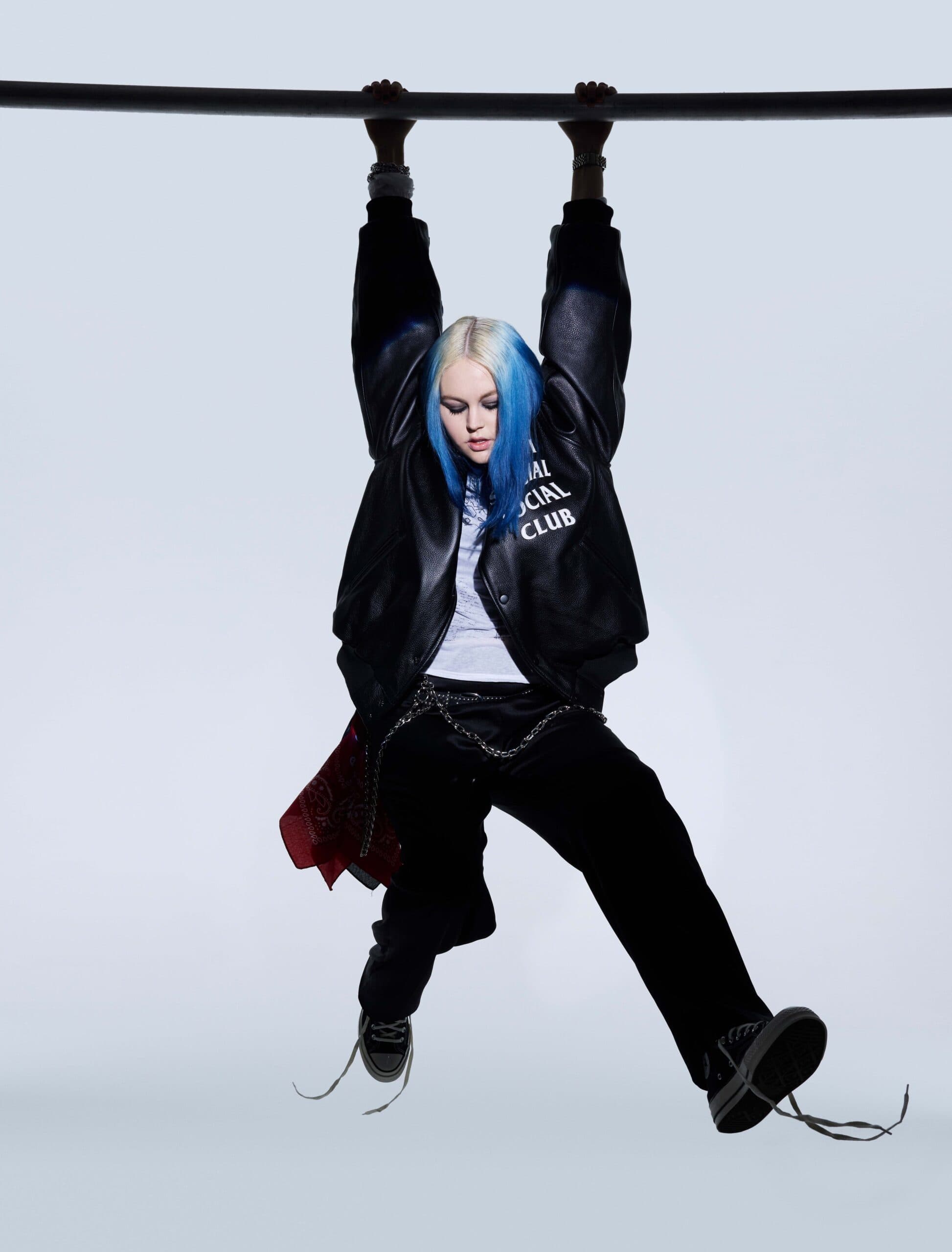the energy clicks into place. Bleached blue hair, dark liner and all confidence, but beneath that an unmistakable warmth. They smile wide, laugh easily and fill the silence before it’s even quiet. There’s a looseness to them, like someone who’s learned that being bold and being kind can live in the same space. “I sing about things I struggle to say out loud,” they tell me. “If it helps someone else feel less alone, then it’s worth creating.” In that, Lleo becomes exactly what they never had — the kind of role model they once needed, owning every shade of their identity without apology.