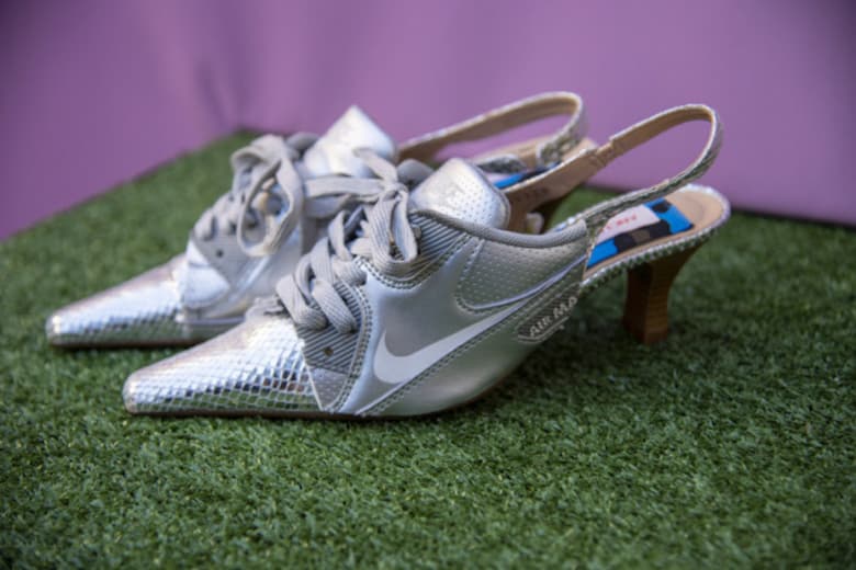 It came to life out of a personal project. I had lots of shoes at home that I didn’t wear anymore so I decided to re-use them and make something that I’d like to wear. Most of them were kitten heels and Nike trainers so I mixed them up into a hybrid shoe. It’s also like a tribute to old trainers. Back in the days it wasn’t as easy to buy trainers as it is today and I don’t think we should take anything for granted. Nowaday the more we have, the more we want. I think I just didn’t want to create anything new, but instead I wanted to reflect on what I already had and use it.