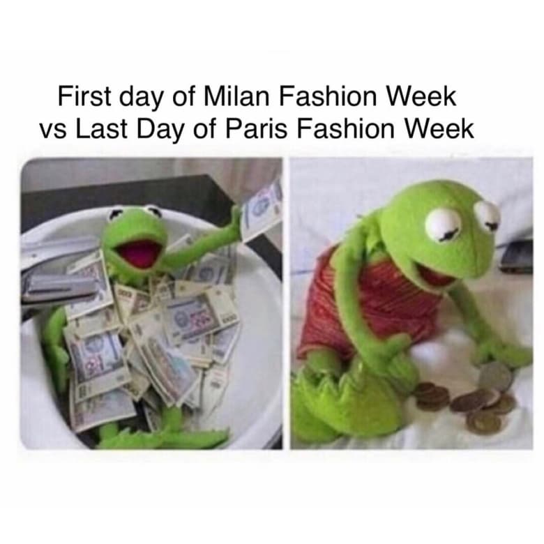 You can follow @fashionweekfrog on Instagram. Check out some of their greatest hits below.