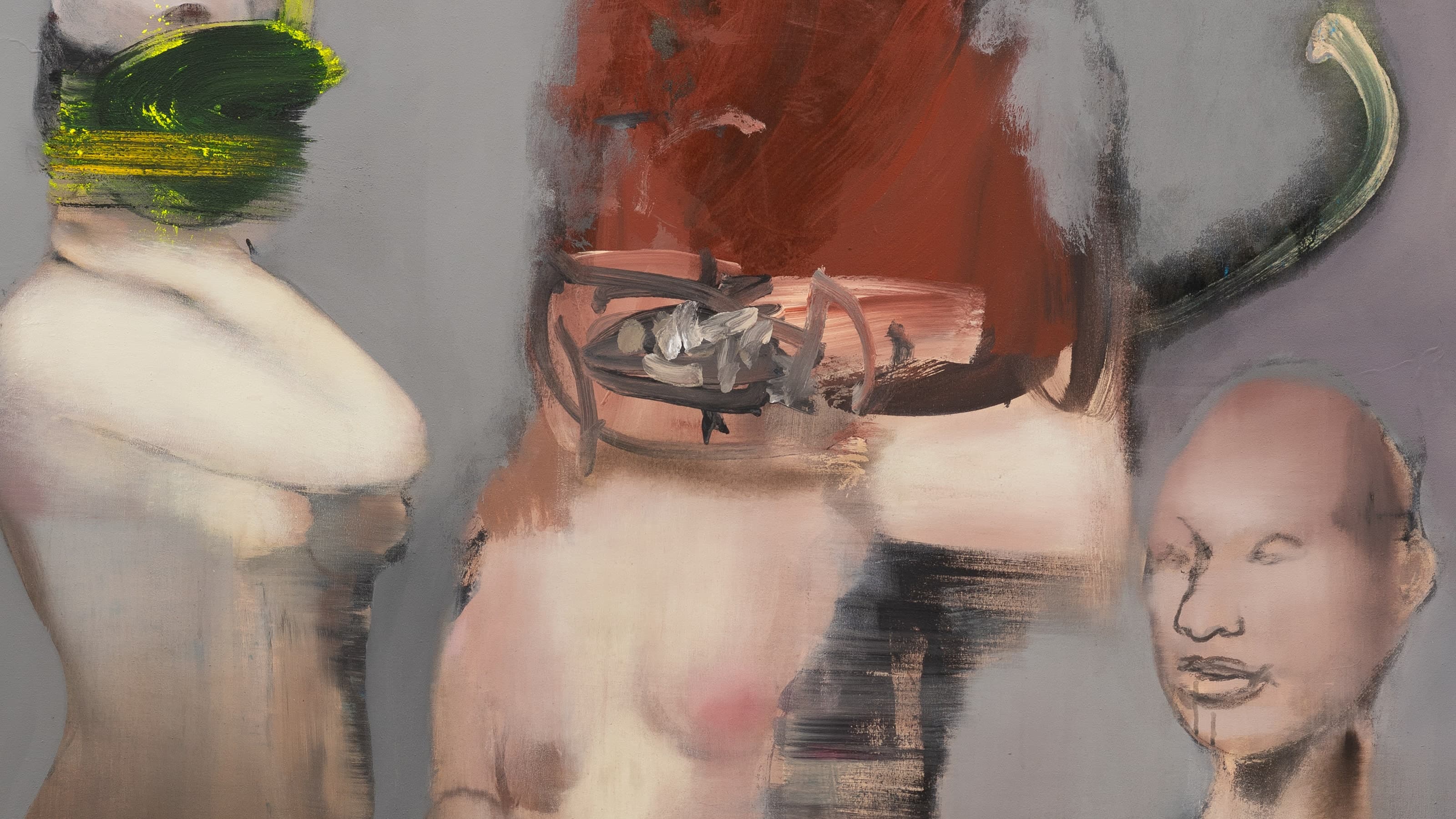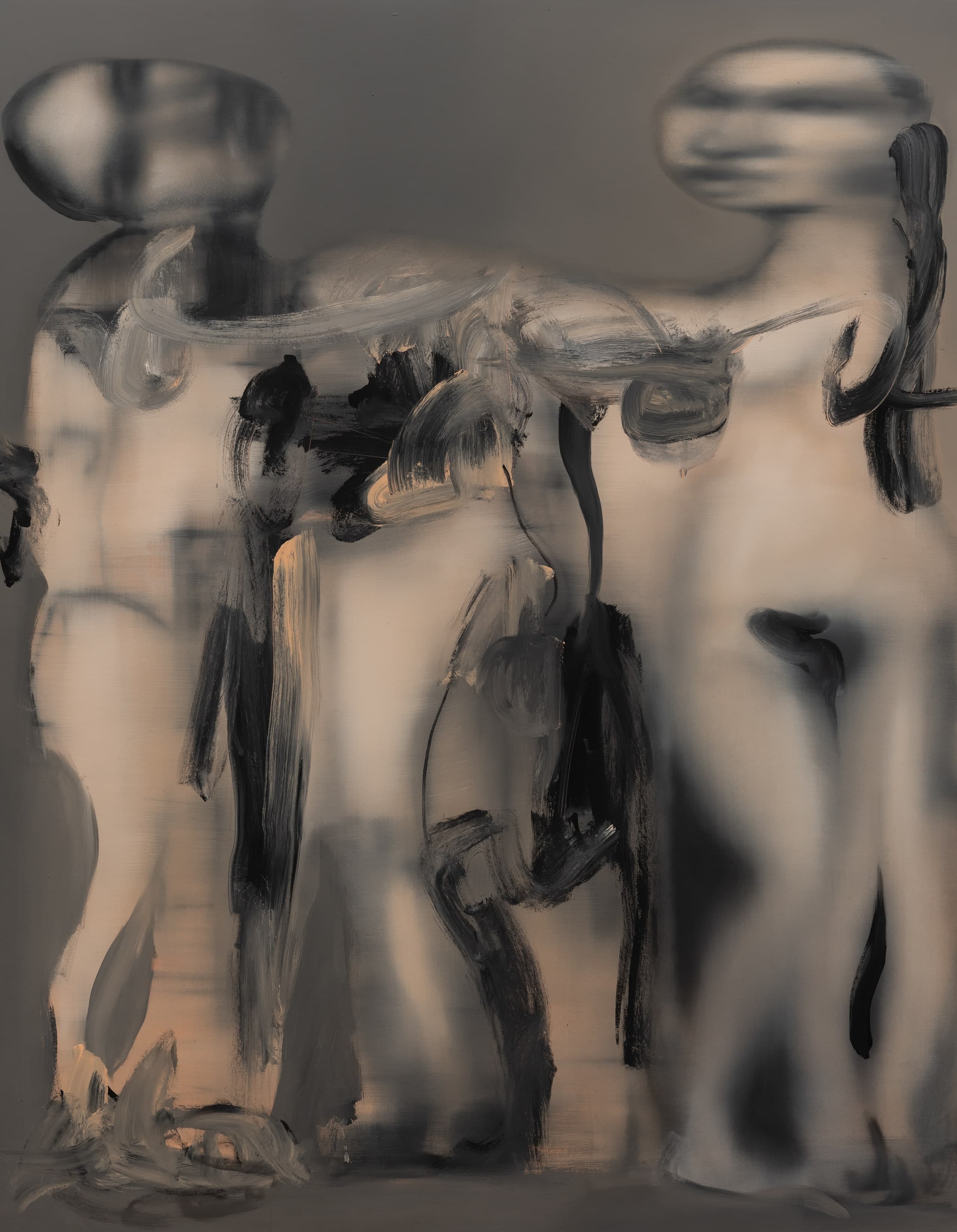 Hazy and mysterious nude bodies are at the centre of George Rouy’s paintings, a young British artist known for creating figurative large-scale acrylic canvases. “My mum comes up quite a lot,” he tells me when I ask if his figures are based on existing people, “but in a very subtle way. Although some of [the figures] are a nod to real people, it isn’t a conscious decision. I think it would be disruptive to link [the figures] to real life.”