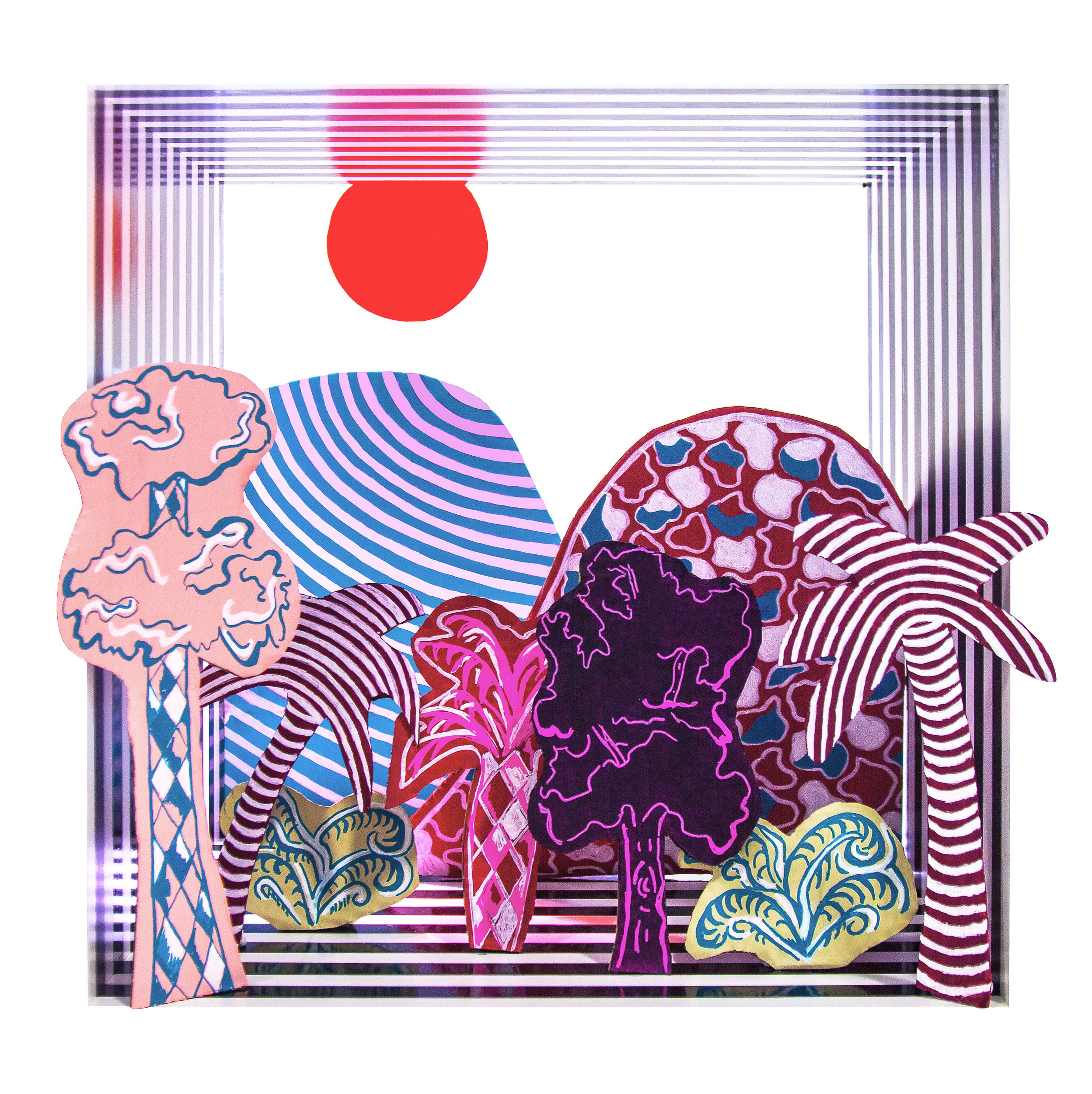 Georgie Sladen caught up with HUNGER to explain her obsession with changing how we perceive art: “I love to look at different ways to create depth perception within a 2-D format”, she explained “this fascination comes from my lazy eye which means I only see in 2-D anyway”. Going on, Sladen described that her perceptive change means that a lot of the work “looks at contours, shapes and layers. I have a fascination with forms, shapes and patterns as they can be seen everywhere and run through everything.”