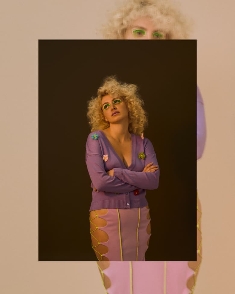 Cardigan / Markus Lupfer // Earrings / Dominique Renée