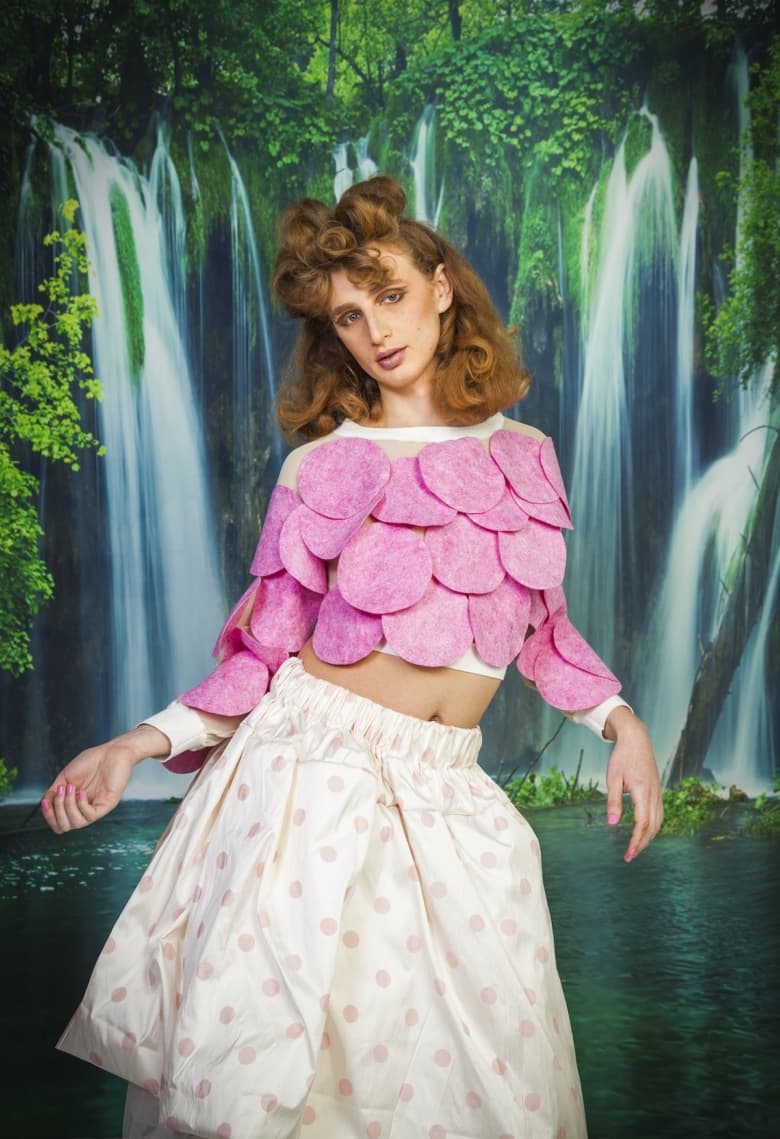 With The Garden, they have created a fashion utopia with a distinctly DIY feel, with the editorial featuring leaves and petals, recycled shopping bags and tongue-in-cheek backdrops. The designs are also committed to a radicallt inclusive vision with colours, cuts and patterns not assigned to a single gender, body type, skin colour, age or season.