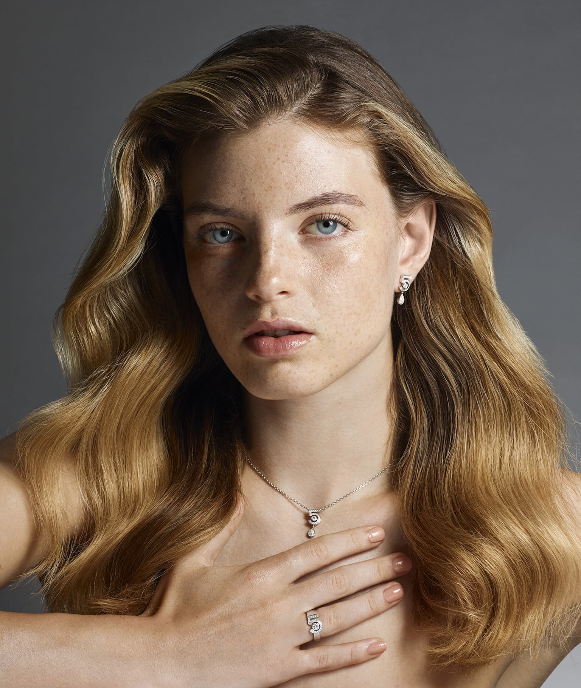 To celebrate the 100th anniversary of the N°5 perfume, Patrice Leguéreau, Director of the CHANEL Fine Jewelry Creation Studio, has imagined the “Collection N°5”, the first High Jewellery collection ever to be dedicated to a perfume. From the bottle to the sillage, these hundred and twenty-three extraordinary pieces express the different facets of the N°5 perfume. Daring creativity, noble materials, and an accentuated femininity together with an intimate character and a powerful timelessness, the “Collection N°5” reflects the main features of the iconic perfume. Through the one hundred and twenty-three flexible and architectural pieces of jewellery, CHANEL offers its vision of the contrast between the graphic design of the bottle and the sensuality of the fragrance.