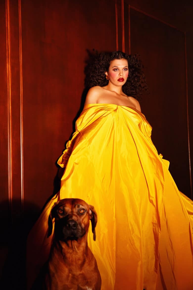 DS: I love your photo too. Working with you was great because you aren’t only a model, you’re a creative so you understand the process and all the elements that have to come together to make the image. I think having that sensibility, approach, and understanding in regard to how an image is made really enriched your capacity as a model. By the time I got behind the camera, I knew you had fully enveloped yourself in this world we were creating – and this came through in the way you moved. A lot of people might be intimidated by the idea – you’re going to be wearing this really expensive dress, you’re going to be sitting in cake in the middle of a table in front of a room of 30 strangers, you’ll be surrounded by dogs running around. But you were just completely unfazed, getting the shot and being super excited. This energy really rubbed off on me and I knew I would get something great.