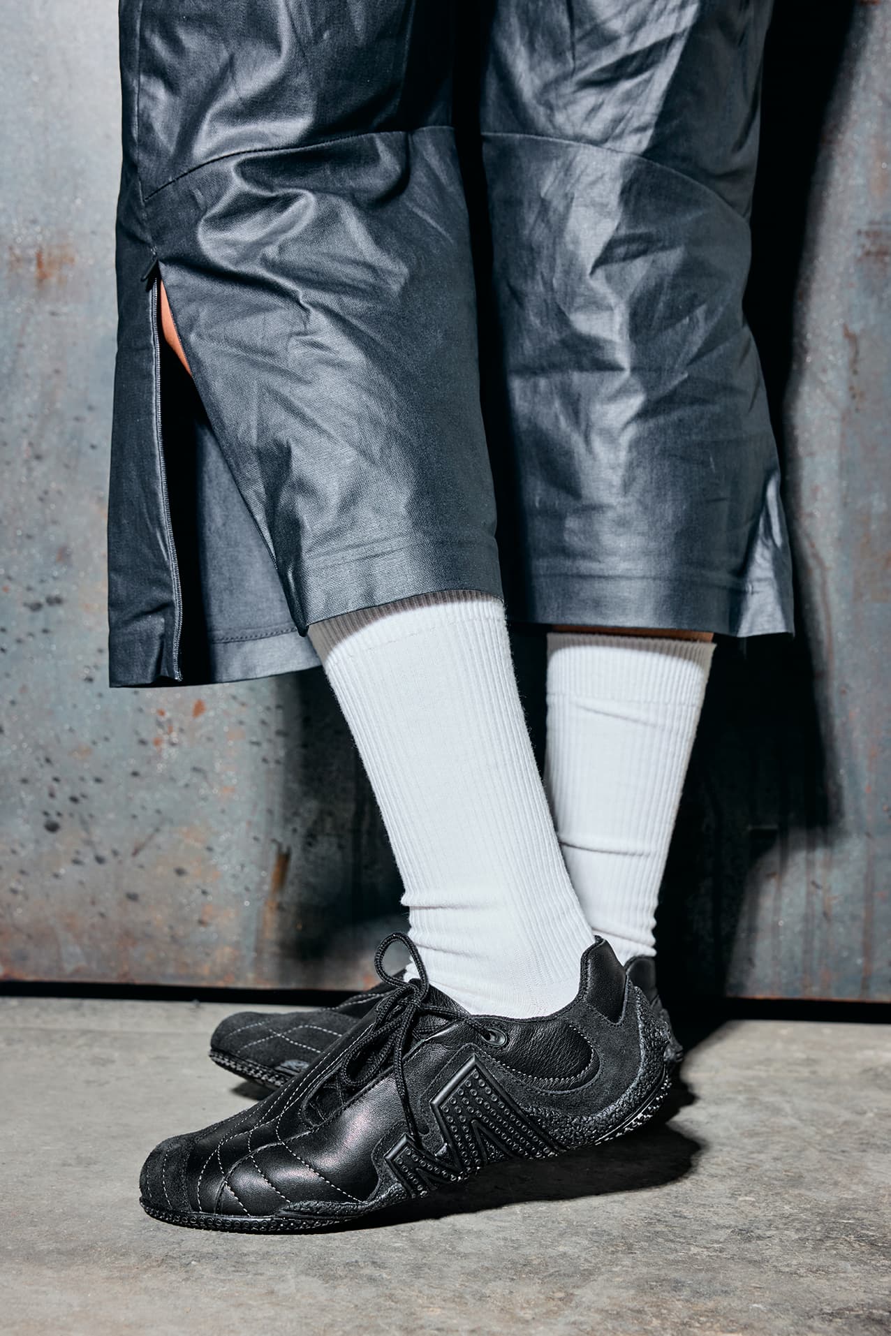 After an arduous winter, it’s safe to say my bright yellow Speedcats are looking a bit more vomit than vibrant. Thankfully this week we’ve got a bumper footwear feature for just in time for the big spring clearout. Starting strong we’ve got the Merrell 1TRL SS26 collection. For a collection based on developing styles from the brand’s archive, it’s extremely futuristic and fashion-forward. The brand’s classic Jungle Moc is re-invented as the Jungle Trek Mule, which comes in a two-tone, cybersigilism style camo print. With a lowered heel tab and blended platform, the new sillhouette is a super sleek update. The standout from the collection, however, is the Relay Web 1TRL, hailed from the Sprint family of the 2000s. The low-profile shoe comes in two leather colourways with contrast stitching, and a tongue flap hiding the laces for a polished upgrade, but retains the one-piece heel we loved so much in its predecessor. In jet-black it’s very Matrix-chic, the perfect day-to-night shoe for those Friday (or Thursday, no judgment here) after-work drinks. Find drop 1 here, and keep your eyes peeled for the release of the second half of the collection.