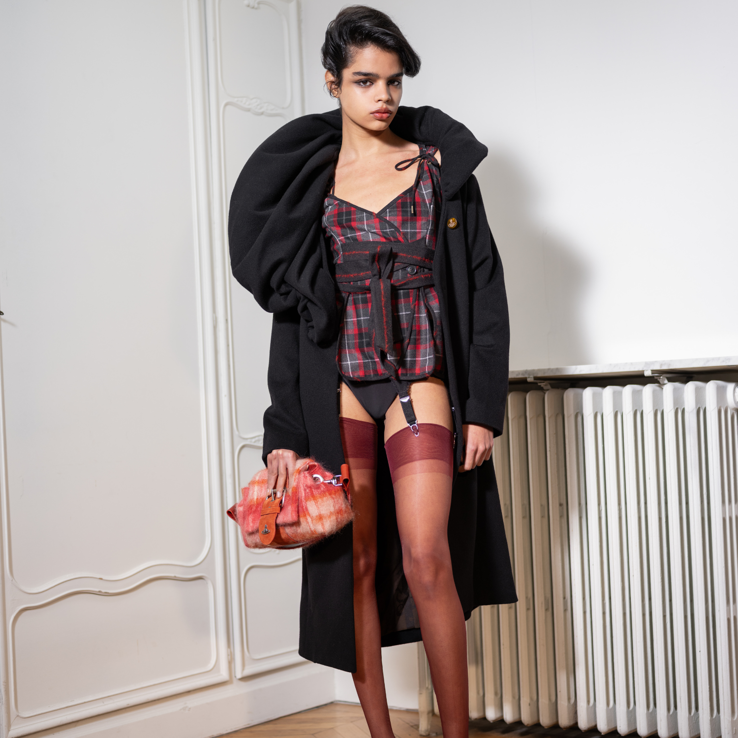 Vivienne Westwood has just launched its AW26/27 collection, Anglophilia, and it’s a love-letter to the sex and scandal of Tudor England. History made high-fashion, the collection reinterprets details from Holbein’s paintings of the Tudor court, like the open sleeves in that portrait of Anne of Cleves that got Henry VIII all hot and bothered, but in a more Pinterest-friendly way. Alongside open sleeves, the collection features other historically inspired silhouettes like cinched corsets in signature Vivienne Westwood picnic-blanket print. There’s also striped shirts inspired by the windows lining Jermyn Street which, when paired with hold-up stockings, are the perfect base for an office siren look. Of course, there are nods to the brand’s heritage, too, like the faded handwritten model running order from the SS97 show. The collection is sultry and crafted with intent, dramatic but chic, making it the perfect luxury autumn uniform. Browse the collection here.
