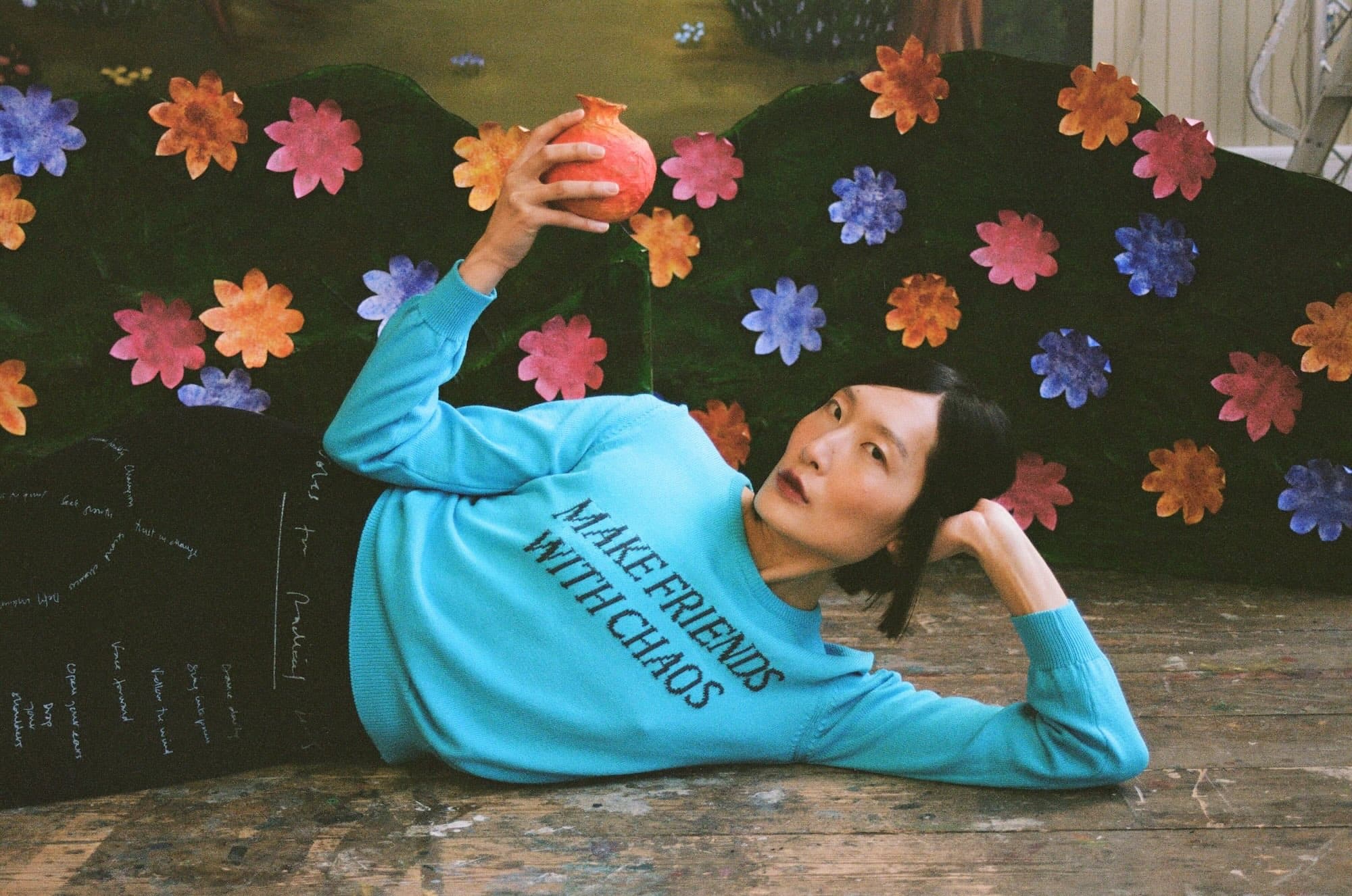 Wool brand HADES is a certified IYKYK cool-girl brand. Known for plastering provocative statements across jumpers, popping images of Queen Liz on skirts and using cigarette-shaped cardigan buttons, it’s the brand making knitwear anything but boring. The upcoming collaboration with actress Tilda Swinton is only further proof of that. Inspired by the global crises we find ourselves living in, Notes from the Precipice places us in a faux Garden of Eden — somewhere to both embrace the chaos and hide away from it. Collection highlights include emerald and ruby ruffled shoulder bags that read ‘Let Things Shake’, and a bright cerulean with Swinton’s slogan, ‘Make Friends with Chaos’. Though the pieces stand out by themselves, the campaign shoot and its set — painted by students from the local Birmingham School of Art — is super cinematic and worth checking out, too. Pinterest-board-worthy knitwear with purpose, the only downside is that it doesn’t drop until the end of the month, but that only gives you more time to mull over what you’re going to buy. Keep an eye on the website here.