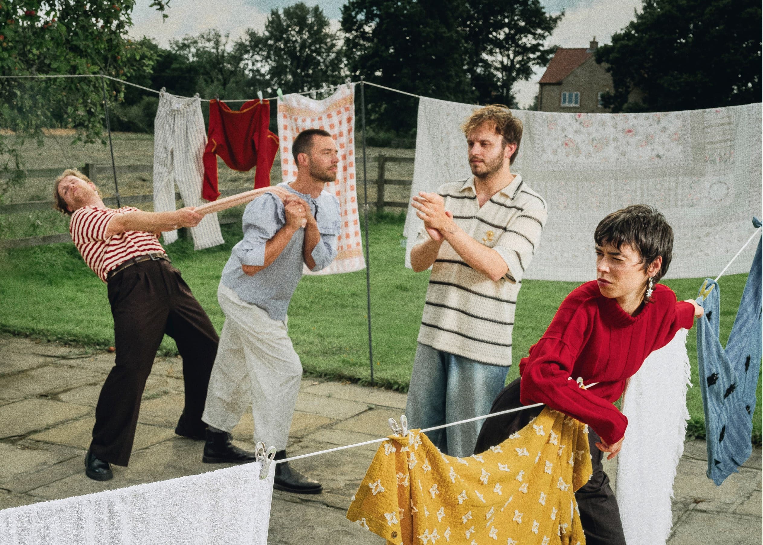 Divorce likens the release of their first album to “standing on a precipice completely in the nude”. It’s this melange of humour and vulnerability that forms something of a trademark for the Nottingham-born band. It’s also a throughline in Drive to Goldenhammer, which acts as a sonic exploration of the meaning of ‘home’. Recorded in the depths of winter at the picturesque Real World Studios — where the band ate together but definitely did not sleep in the same room — the album emerged from a moment of stillness and reflection in what is an otherwise “placeless” life. For the band, that’s exactly what the fictional locus of Goldenhammer represents — a tangible place to ground oneself in the midst of chaos. And, while “restlessness” is something lead guitarist Adam describes as essential for an artist, Goldenhammer is a universally needed place — and the band wants to welcome you in.
