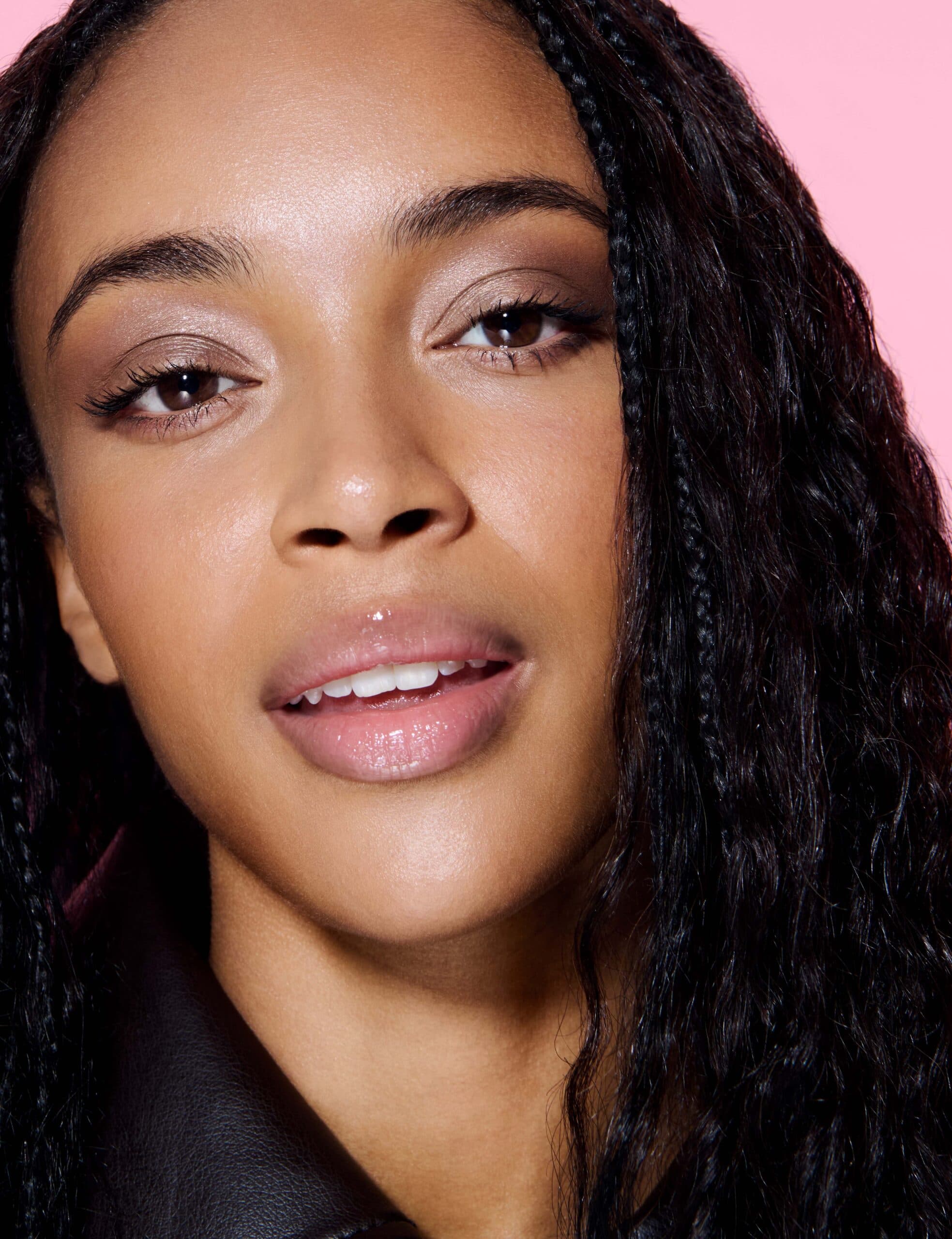 Lily wears LANCÔME Teint Idôle Ultra Wear foundation in 120N on skin, LANCÔME Lash Idôle Curl Goddess mascara in Divine Black on lashes, LANCÔME Idôle Goddess Dimension Mono eyeshadow in 05 Meteor Smoke on eyes and LANCÔME Lip Idôle Juicytreat in 00 Clear-ly Obsessed on lips.